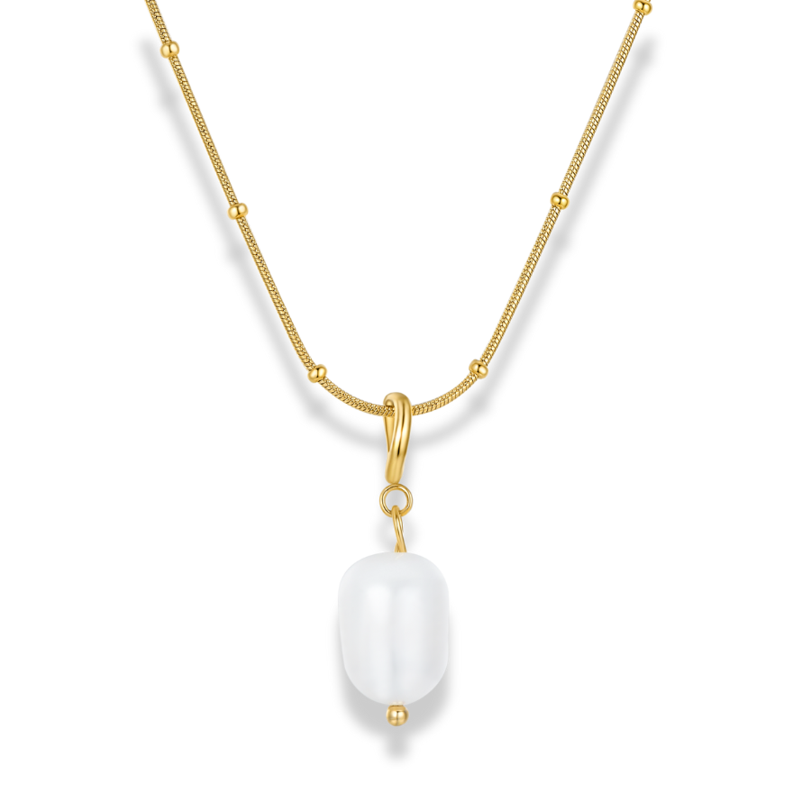 Die Classic Dangling Pearl Kette vereint pure Eleganz mit zeitloser Raffinesse. Eine feine, kunstvoll gearbeitete Kette mit kleinen goldenen Kugeln trägt im Zentrum eine schimmernde Perle, die sanft herabhängt und das Licht auf edle Weise reflektiert. Dieses Design verkörpert das raffinierte Zusammenspiel von goldenem Glanz und zartem Perlenschimmer – eine Kombination so alt wie die Zeit und doch immer modern.