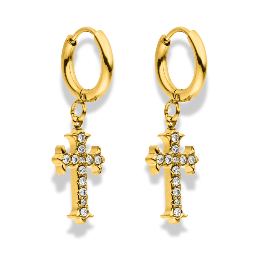 Precious Cross Huggie Ohrringe 14K Vergoldet