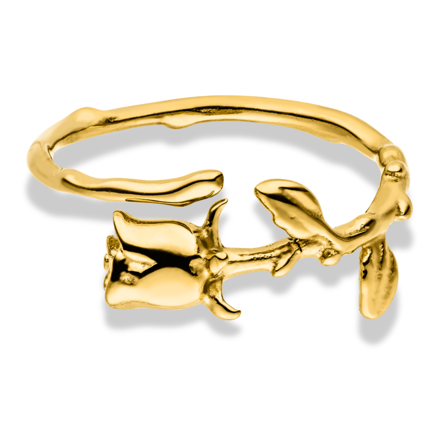 Der All Around Rose Ring verzaubert mit seinem romantischen und eleganten Design: Eine zarte Rose, kunstvoll um sich selbst geschlungen, windet sich sanft um die Ringschiene. Das florale Motiv steht für Liebe, Schönheit und ewige Verbundenheit – ein zeitloses Symbol, das feminine Raffinesse mit natürlicher Anmut vereint. Die edle 14K Vergoldung verleiht dem Ring einen warmen, luxuriösen Glanz und macht ihn zu einem stilvollen Hingucker für jeden Anlass.