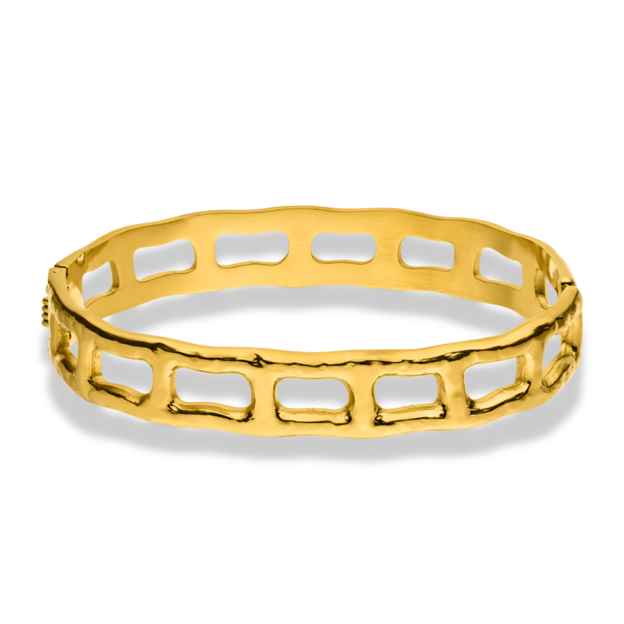 Der Armreif ist ein ausdrucksstarkes Schmuckstück: elegant und zugleich auffällig, ideal für Fashion-Liebhaber:innen, die nach einem außergewöhnlichen Highlight suchen.