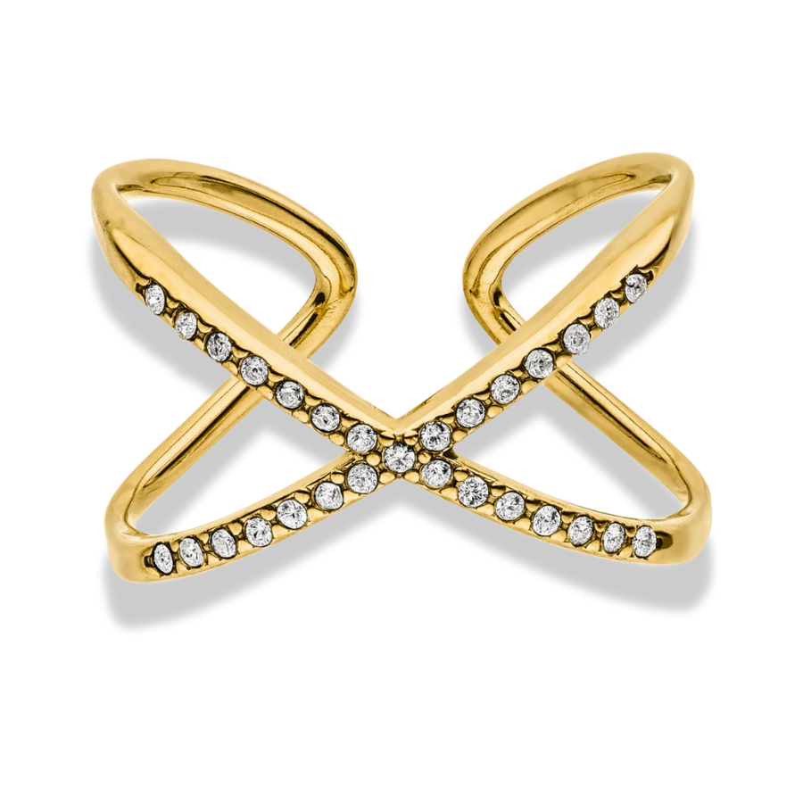 Ob im Alltag, im Büro oder zum Ausgehen – der Pave Crossover Ring setzt ein klares Zeichen für Stilbewusstsein mit einem Hauch Glamour.
