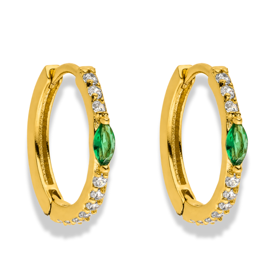 The Emerald Marquise Huggie Hoop Earrings are ideal for those who love classic elegance with a modern twist. Whether for everyday wear or special occasions, this delicate accessory adds a stylish pop of color and can be combined in a variety of ways.