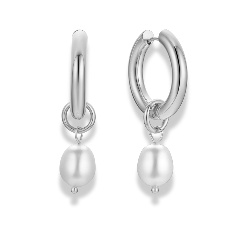 The classic hoop earrings are embellished with a shimmering freshwater pearl, adding an elegant, modern touch to any look.