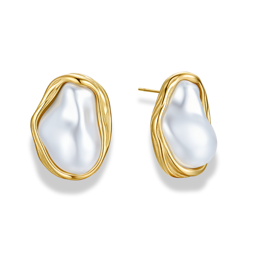The Golden Framed Pearl stud earrings embody timeless elegance in a modern interpretation. A shimmering pearl is encased in a delicate frame of gold-plated stainless steel, perfectly showcasing it. The sophisticated design highlights the pearl's natural beauty and adds a touch of refinement to any outfit.