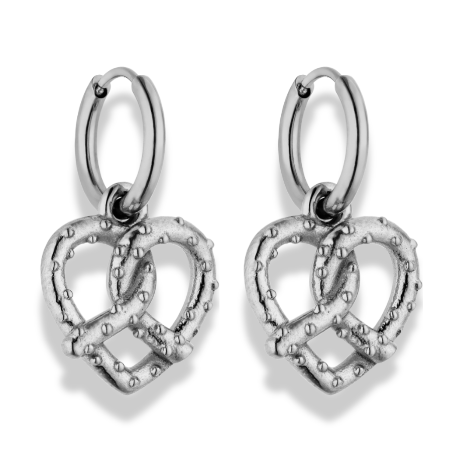 Playful, original, and utterly charming: The Salty Heart Pretzel Huggie Hoops combine the classic huggie shape with a unique heart-shaped pretzel pendant accented with "salt." A sweet, eye-catching detail that adds a touch of humor and creativity to any look: perfect for those who enjoy unusual jewelry. Product features: