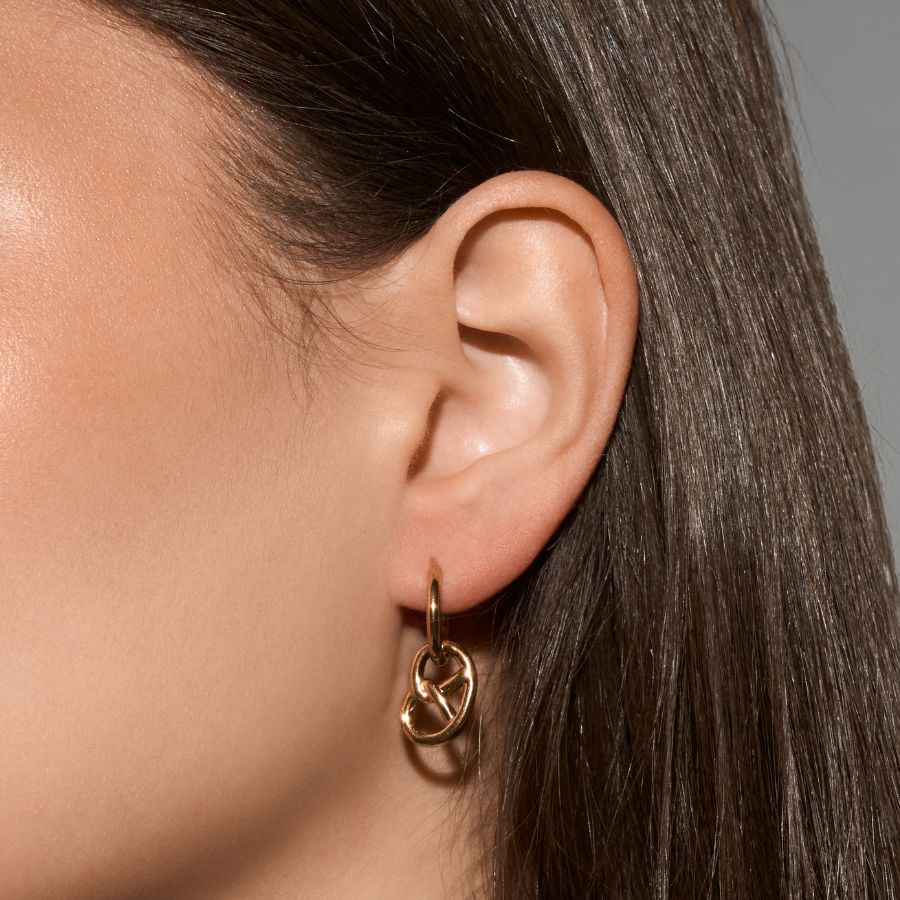 Playful, cute, and totally on trend: The Simple Pretzel Huggie Hoops combine the classic huggie shape with a charming pretzel pendant. Simple in design, but with a lovely detail that adds a cheerful and fashionable touch to any look. Product features: