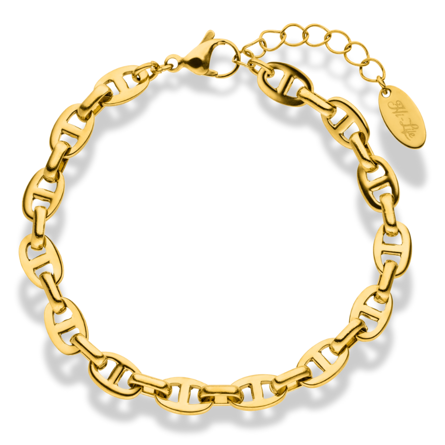 Timeless sophistication meets modern minimalism. The bracelet, plated in the finest 14K gold, shines subtly and elegantly, attracting attention without being ostentatious. Sleek lines, clearly defined shapes, and a harmonious surface make it an indispensable companion for every occasion, from office attire to a dinner date. The adjustable fit ensures comfort and a perfectly elegant, tailored fit on the wrist.