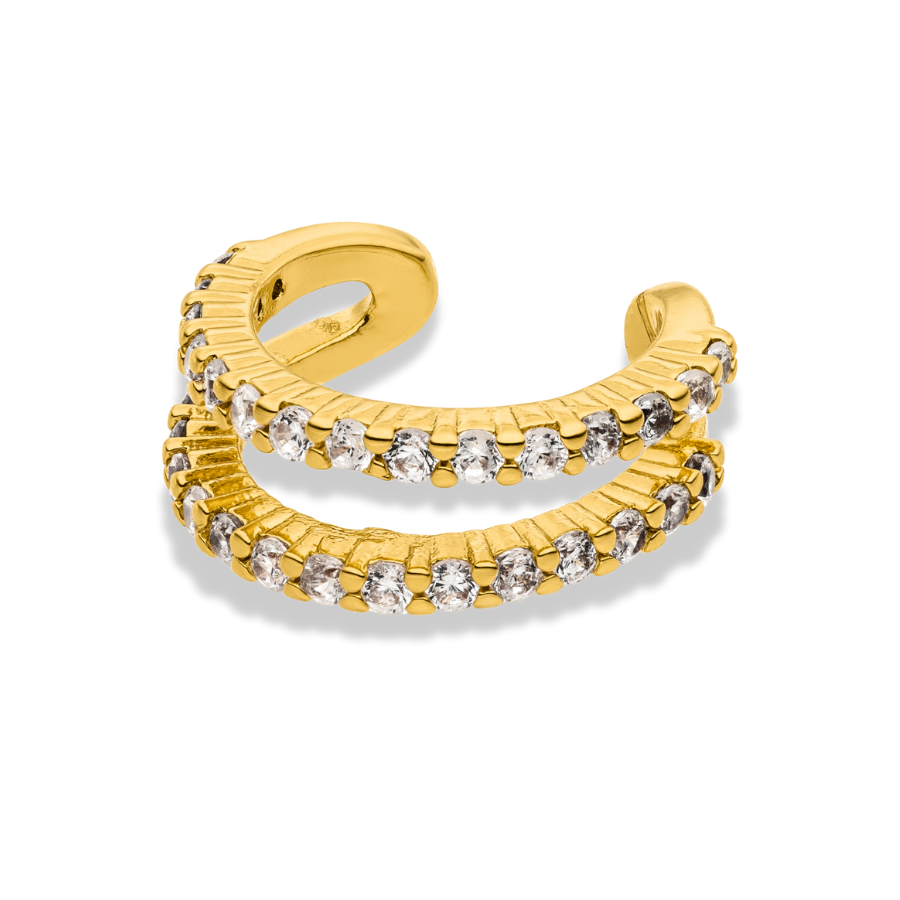 Le bijou d'oreille Double Line séduit par son design épuré et moderne et ses détails raffinés. Deux lignes parallèles, élégamment reliées, confèrent à ce bijou une légèreté architecturale. Des zircones scintillantes apportent une touche d'élégance et un éclat subtil. Grâce à sa forme flexible, le bijou s'adapte facilement à toutes les formes d'oreilles, sans perçage.