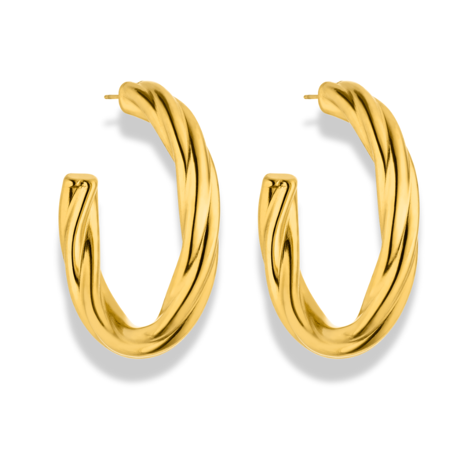 Ein Statement aus fließender Eleganz: Die Bold Twisted Meltdown Ohrstecker verkörpern die Anmut von geschmolzenem Gold, kunstvoll in eine offene Creolenform gebracht. Mit ihrem warmen Goldton und der sanft verdrehten Struktur schimmern sie bei jeder Bewegung und ziehen alle Blicke auf sich.