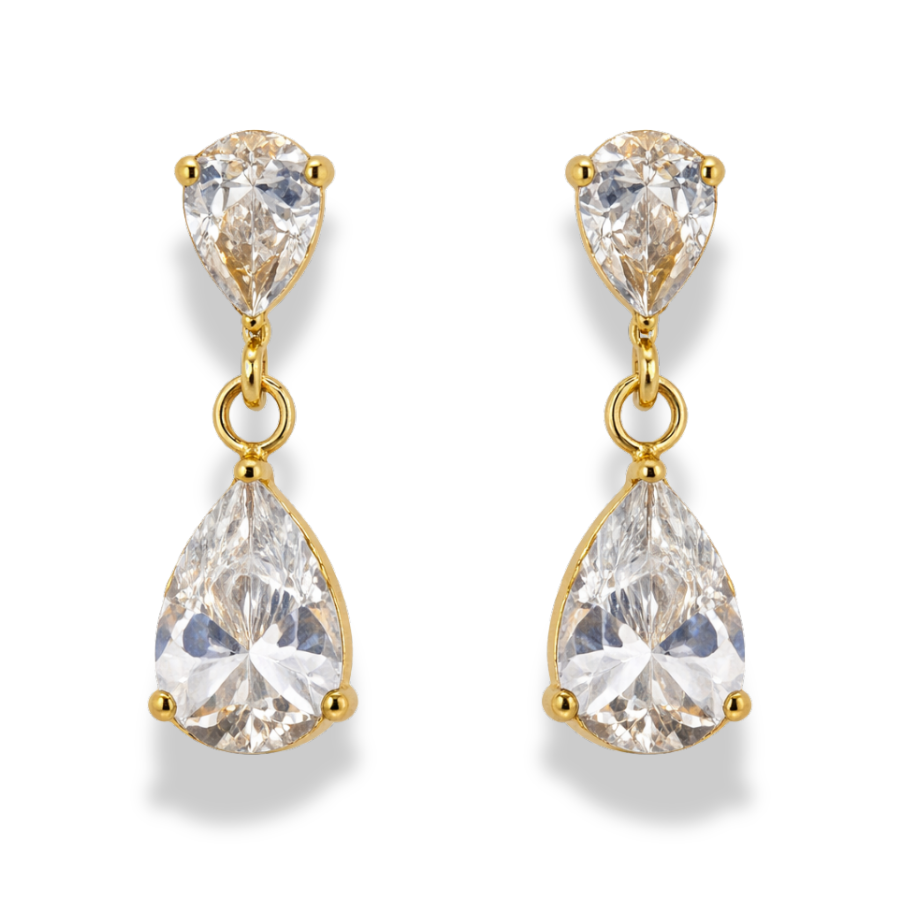 Die Double Teardrop Ohrstecker bestechen durch ihr elegantes, modernes Design. Jeder Ohrring besteht aus zwei miteinander verbundenen Zirkonia-Steinen in Tropfenform, die sich zueinander in entgegengesetzte Richtungen neigen und so ein harmonisches, funkelndes Spiel erzeugen. Das Licht wird auf jedem Stein wunderschön gebrochen, wodurch die Ohrstecker bei jeder Bewegung dezent glitzern. Produktmerkmale: