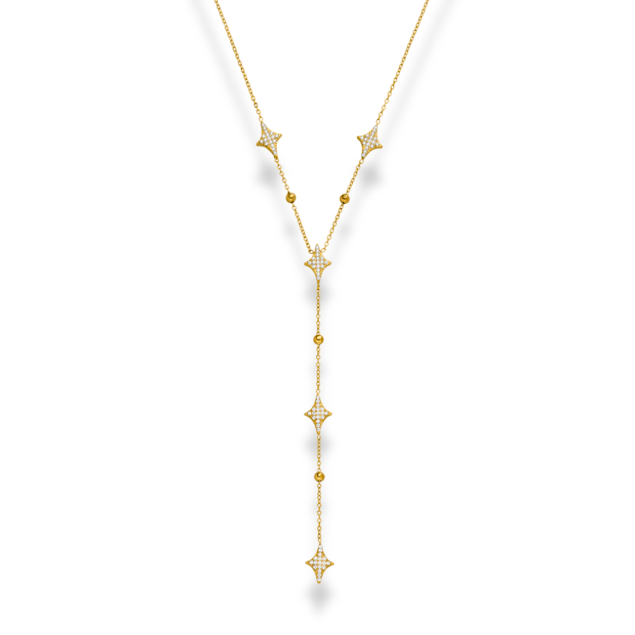 Die Everlasting Carreau Kette in Y-Form aus feinen goldenen Gliedern führen zu einem zentralen Anhänger in Karoform, der mit funkelnden Zirkonia Steinen besetzt ist. Die elegante Y-Form verleiht der Kette eine harmonische Linienführung und lässt die funkelnden Anhänger besonders schön zur Geltung kommen.