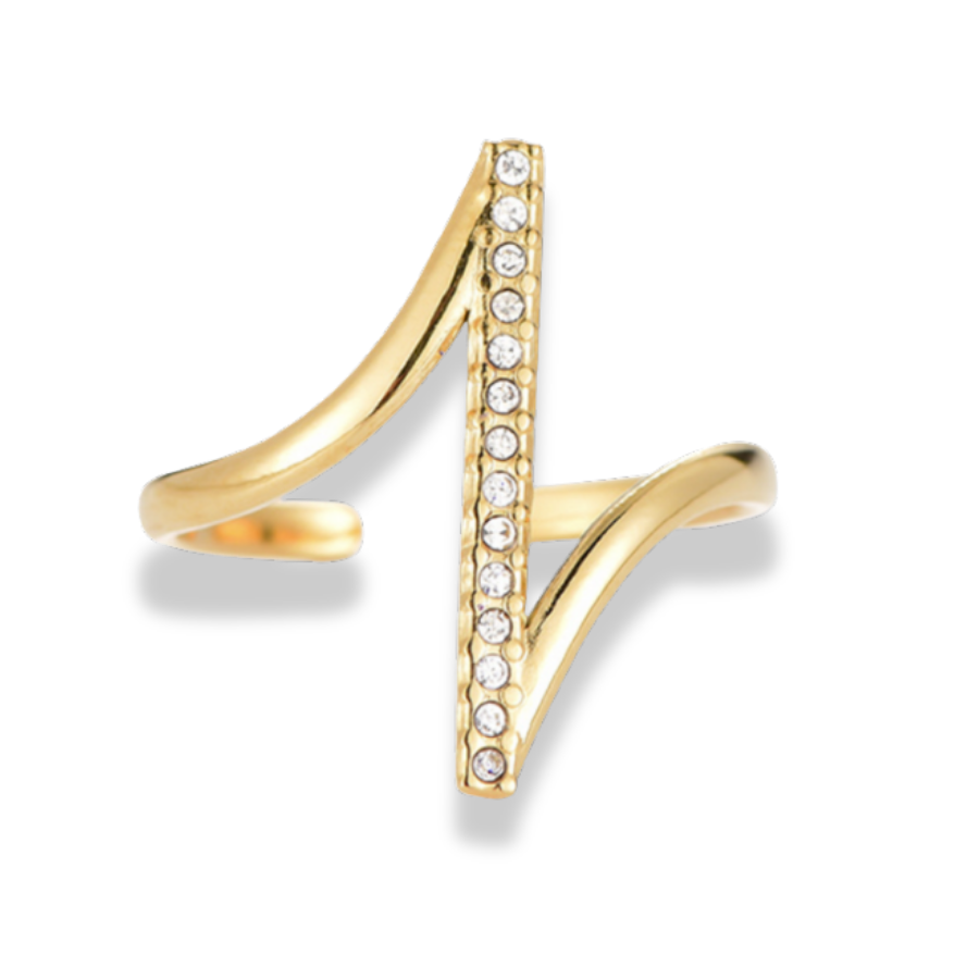 Der Faith Line Ring steht für Klarheit, Stärke und moderne Eleganz. Das offene Design wird von einer vertikalen Linie aus funkelnden Zirkonia-Steinen geprägt, die dem Ring eine klare, architektonische Ausstrahlung verleiht. Die geschwungene Ringschiene rahmt die mit Steinen besetzte Linie harmonisch ein und sorgt für ein spannendes Zusammenspiel aus Weichheit und Struktur.