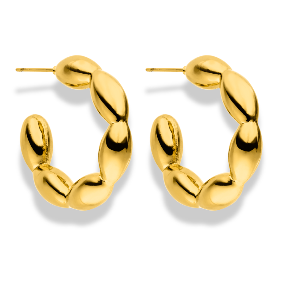 Modern, auffällig und stilvoll: Die Golden Bold Bubble Ohrstecker überzeugen mit ihrem außergewöhnlichen Design. Die offenen Creolen erinnern an eine kunstvoll geschwungene Ballonkette: verspielt und zugleich bold. Ein perfektes Statement-Piece für trendige Street-Style-Looks. Produktmerkmale