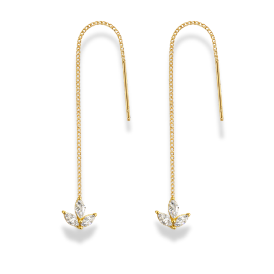 Die Lotus Dangle Ohrstecker vereinen symbolische Bedeutung mit zarter Eleganz. Inspiriert von der Lotusblume, die für Reinheit, Neubeginn und innere Stärke steht, überzeugen diese Ohrstecker durch ihr filigranes Design und funkelnde Zirkonia-Details. Bei jeder Bewegung reflektieren die Steine das Licht und verleihen dem Look eine edle, feminine Ausstrahlung.
