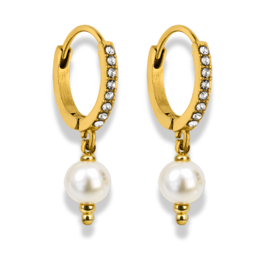 Die Classic Pave Pearl Huggie Ohrringe vereinen zeitlosen Chic mit funkelndem Glamour. Die kleinen Creolen schmiegen sich elegant an das Ohr und sind mit funkelnden Zirkonia-Steinen pave-besetzt, die bei jedem Lichteinfall dezent glitzern. Als Highlight hängt eine schimmernde Perle an jedem Ohrring und sorgt für einen femininen, edlen Akzent.