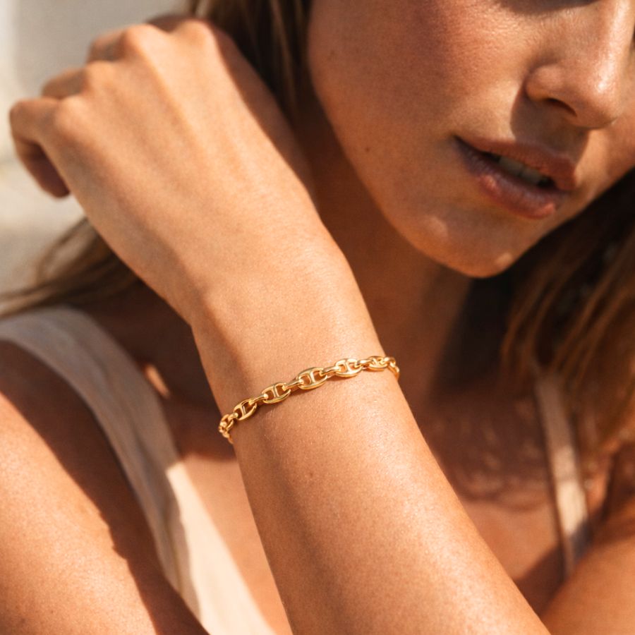 Zeitlose Raffinesse trifft modernen Minimalismus. Das Armband in feinster 14K Vergoldung glänzt dezent und edel und zieht Blicke an, ohne laut zu wirken. Schlanke Linien, klar definierte Formen und eine harmonische Oberfläche machen es zum unverzichtbaren Begleiter für jeden Moment vom Office Look bis zum Dinner Date. Der verstellbare Sitz sorgt für Komfort und passgenaue Eleganz am Handgelenk.