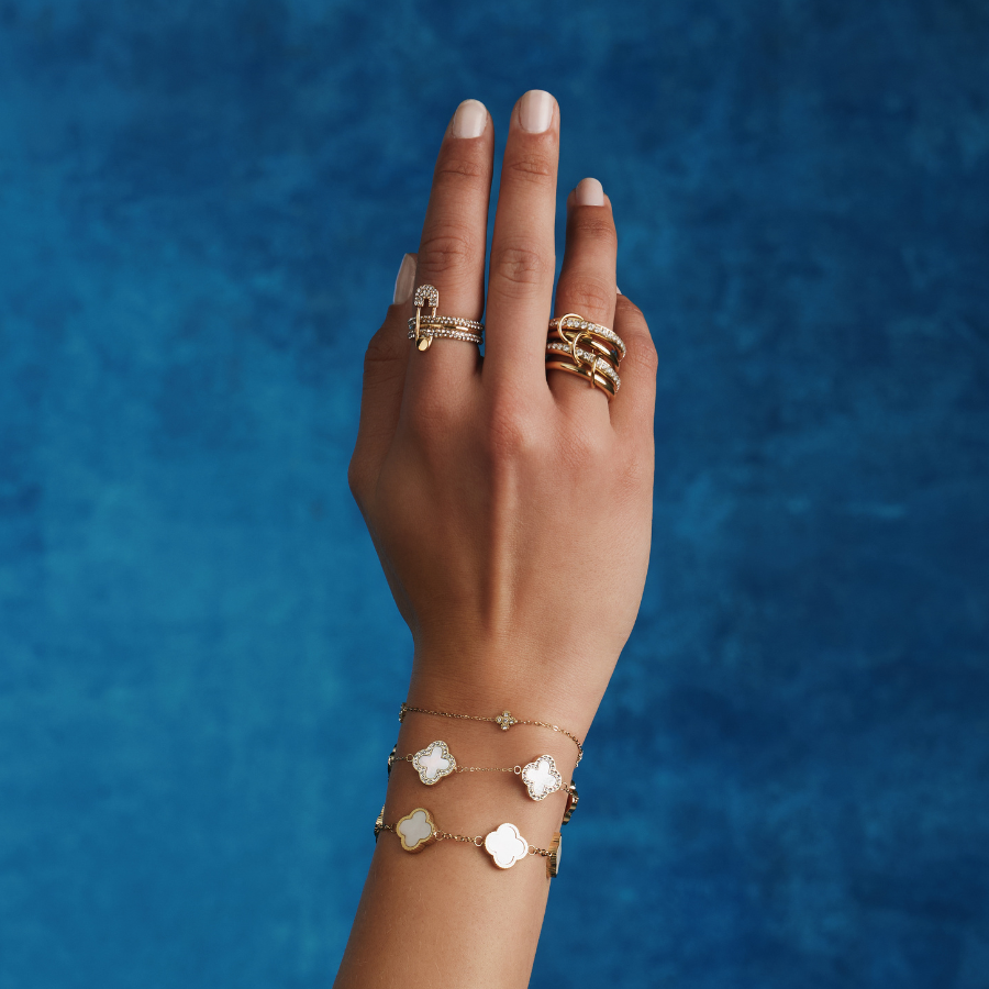Der Pave Flow Safety Ring ist ein absolutes It-Piece und verleiht jedem Look eine unverwechselbare Note. Sein raffiniertes Design erweckt die Illusion, als bestünde er aus drei einzelnen Ringen: Der obere und untere Ring sind mit funkelnden Zirkonia-Steinen besetzt, während der mittlere Ring durch eine außergewöhnliche Verbindung besticht – eine filigrane Sicherheitsnadel, ebenfalls mit glitzernden Zirkonia verziert, die die drei Elemente kunstvoll miteinander vereint. Produktmerkmale: