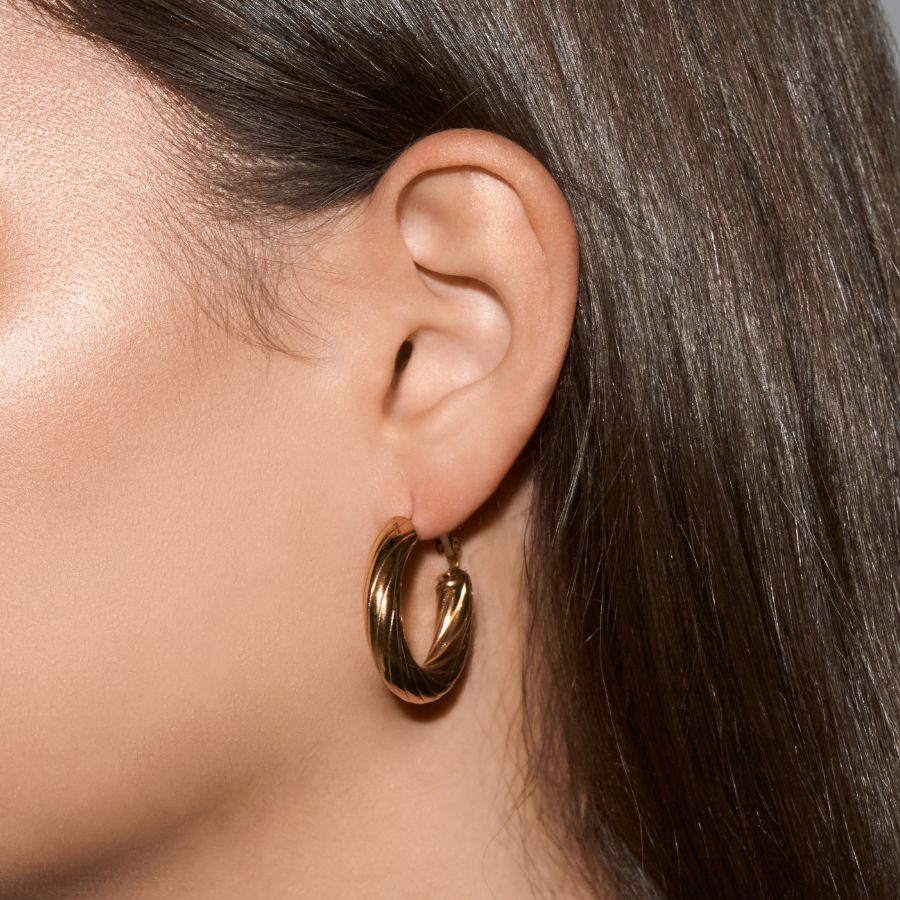 Twisted Bold Hoops Ohrringesind das perfekte Accessoire für alle, die moderne Formen mit klassischer Raffinesse verbinden möchten. Ein Must-have für jede Schmucksammlung – schlicht, aber ausdrucksstark.